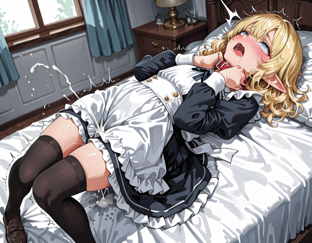 白目を剥き、 涎を垂らし、 金色の髪を振り乱しながら、 リリエルは一時間以上、 絶頂の波に溺れ続けた。 波が来て、引いて、また来て、重なって、 子宮が痙攣し続け、 潮が止まらず、 鈴が鳴り続け、 「もう……止まらない……イき続ける……王族の……淫乱まんこ……」
